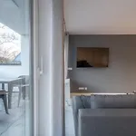The property includes a balcony, a terrace, and a sitting area, complete with a sofa set and a work desk and modern conveniences such as a TV set. Featuring a walk-in shower and a separate toilet, a bathroom is also fitted with dryers and towels.
